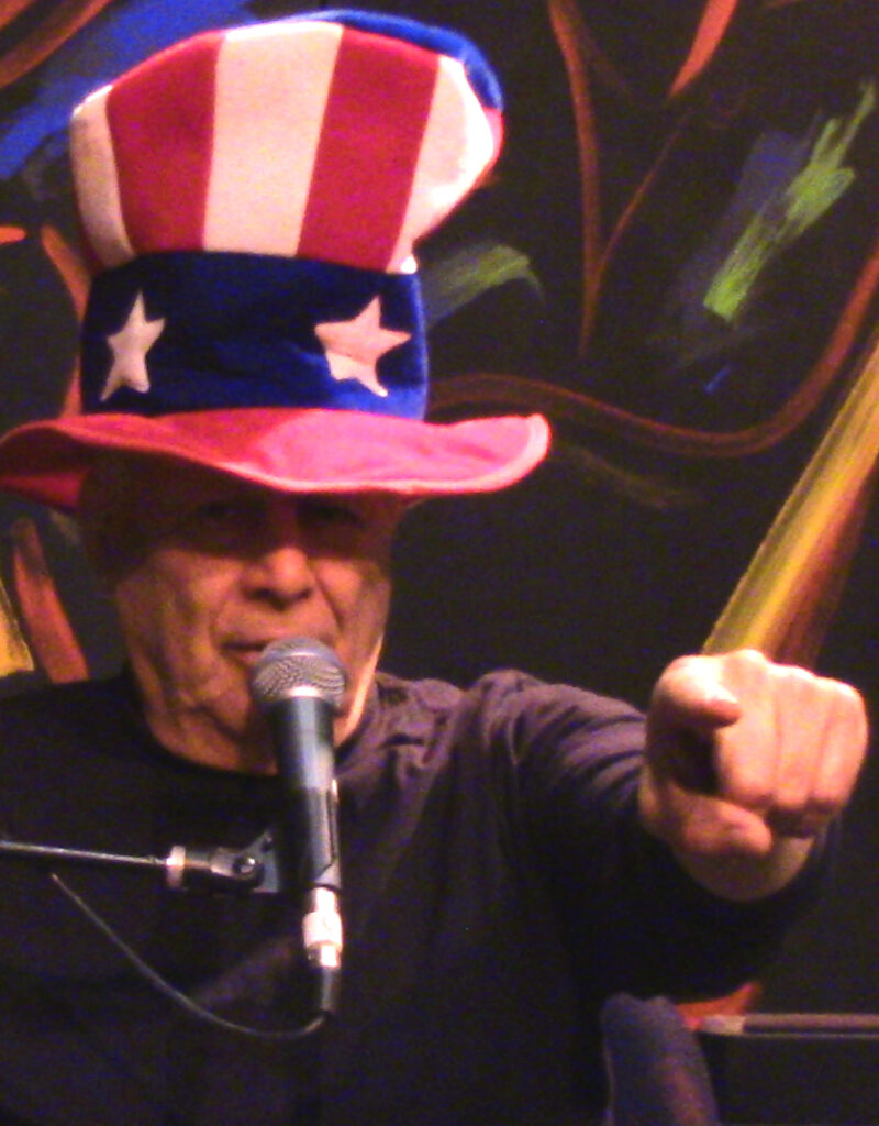 [Spotlight. Performer steps forward, scanning crowd.]