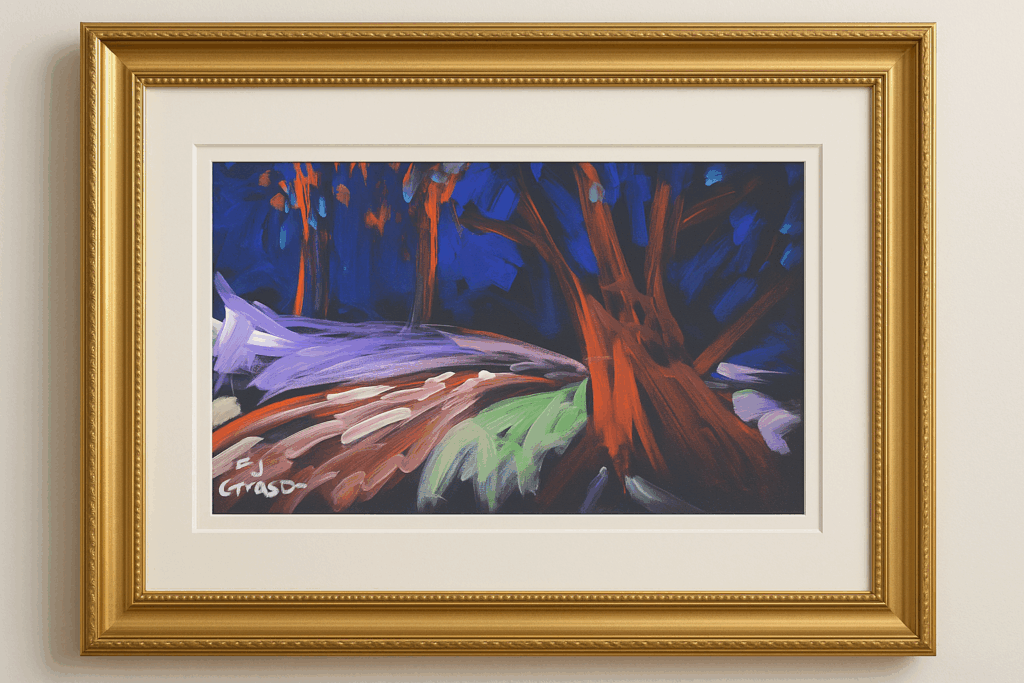If you decide to frame yours, we recommend a 16″ x 20″ frame with a generous double mat and a super-wide “museum style” border. But how you choose to display it is part of the journey. The art will do the work — wherever you place it.